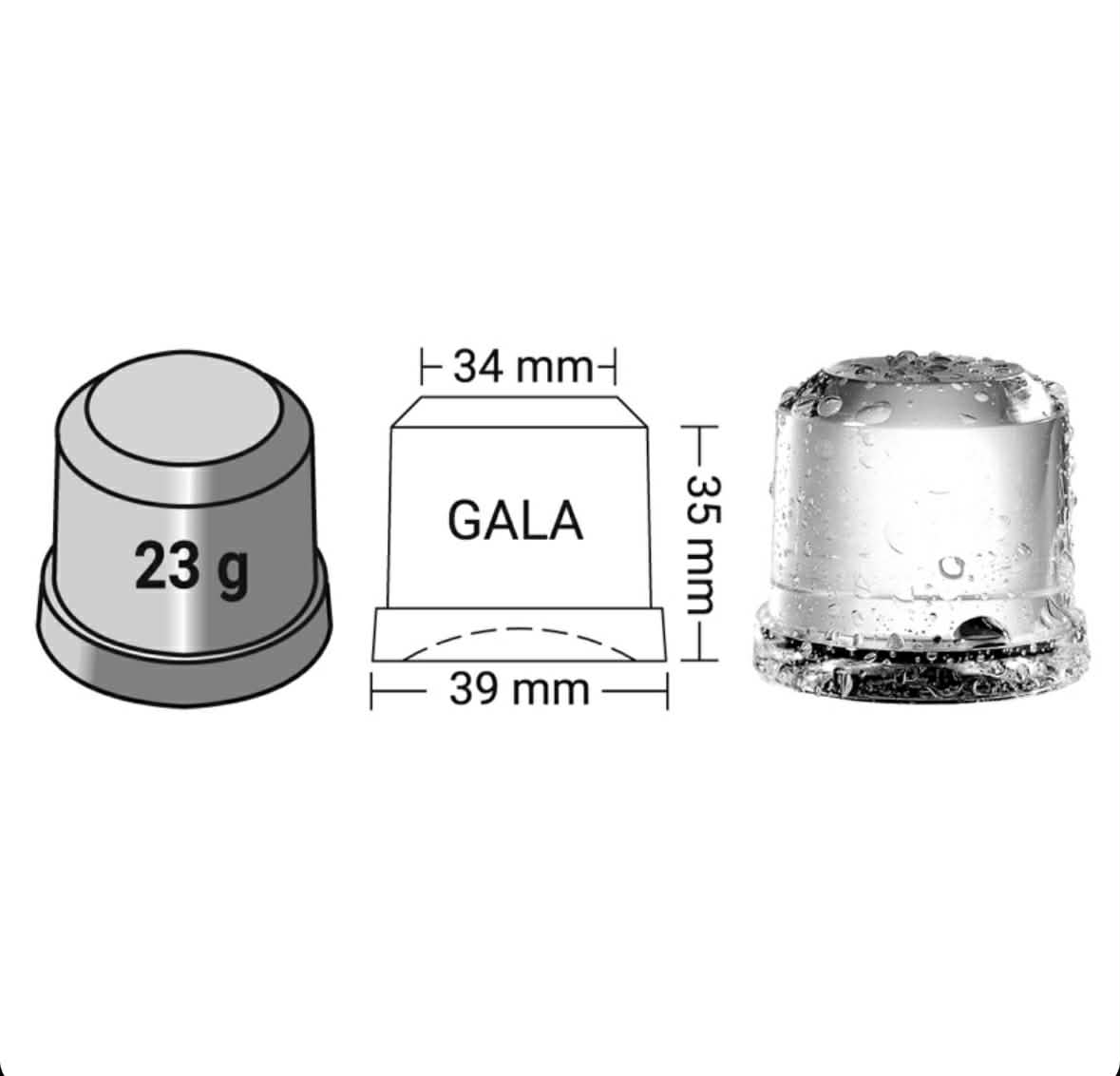 Τα παγάκια που παράγουμε είναι συμπαγή σχήματος κύβου σε 18 και 23 γραμμάρια αντίστοιχα. Τα συσκευάζουμε σε σακούλες των 2 και των 6 κιλών ανάλογα με την περίπτωση και την συνεργασία.